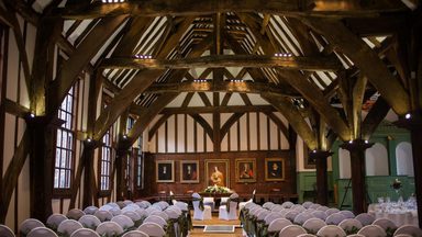 Larger ceremonies take place in our stunning timbered Great Hall, whilst small ceremonies (20 people or less) can be held in the elegant Governor’s Parlour or Committee Room.