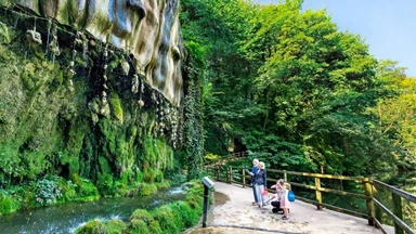 A picturesque mile-long walk along the River Nidd features the cave where famous Yorkshire prophetess Mother Shipton was born. It is situated next to the Petrifying Well, a unique geological phenomenon. Over hundreds of years curiosity has drawn millions of visitors to the well to see cascading water turn everyday objects to stone - as if by magic. People around the world visit the park, a remnant of the Royal Forest of Knaresborough with some of the oldest, tallest beech trees in the country.