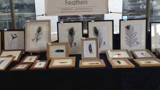 I have been selling my work at the market since 2016 and I am very proud to say my paintings on feathers ‘fly’around the world and they have reached countries like Canada,Australia,USA, Indonesia, China, Germany,France, Holland and so on. Also, I do paint landscapes and seascapes of North Yorkshire with palette knife in acrylic.